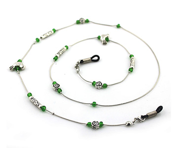 sunglasses chain silver with green beads